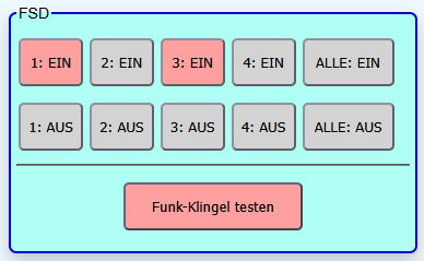 Deshalb die Erweiterung des Dialogs um einen entsprechenden Button. Wenn der Knopf gedrückt wird, wird er rötlich markiert. Per Javascript wird mittels neuem Nachrichtentyp der Befehl an den Communicator (COM) gesendet. Nachdem dieses (Lazarus-) Programm um den neuen Nachrichtentyp erweitert wurde, wird der Befehl an das eigentliche SmartHome-Rack weitergereicht (USB). Die Zentrale (SYS) erkennt anhand des Devices "FSD", wer der Empfänger ist und routet den Befehl weiter.