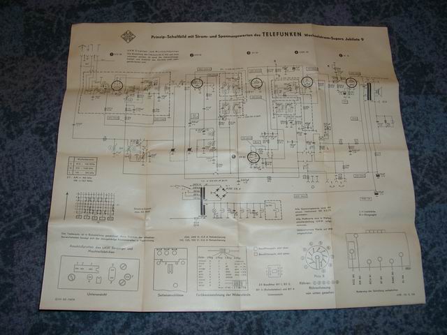 - alt: der komplette Empfängerstrang ist halbleiterfrei. Nicht eine (1) Halbleiterdiode, statt dessen Röhren, z.B. EAA91! Selbst der Gleichrichter ist eine Röhre... Die Verdrahtung ist auf altmodische und sehr arbeitsintensive Weise auf Lötstützpunkten ausgeführt: keine Leiterplatte im Empfangszug! Im Vergleich dazu waren Truxa und insbesondere Jubilate 9 mit ihren "gedruckten Schaltungen" richtig fortschrittlich.