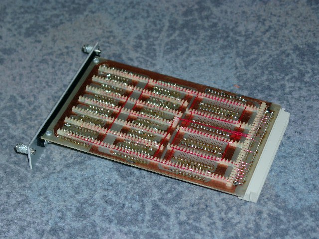 Das ganze sollte modular und möglichst einfach erweiterbar werden. Da lag die Bauweise in 19-Zoll-Einschubtechnik nahe. Schaltbilder vom "TRS-80", bzw. vom "Video-Genie" - ein anderer Nachbau des "TRS-80" - lagen mir vor. Ich habe alles an Hardware-Beschreibungen studiert, derer ich habhaft werden konnte. Dann habe ich mich an diese Hardware-Beschreibungen angelehnt - nachdem ich verstanden hatte, wie das alles zusammenspielt - und verändert nachgebaut: auf Europaplatinen und in "Fädeltechnik" verkabelt. Die reinsten TTL-Gräber. Aber hochintegrierte Chips waren noch Mangelware.