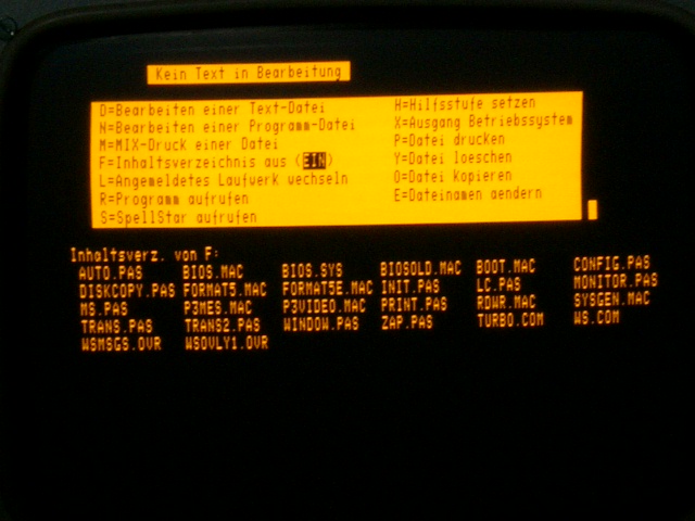 Da bei "CP/M" bis auf die Programmier-Schnittstelle nichts standardisiert war, kochte so ziemlich jeder Hersteller sein eigenes Süppchen: es gab unzählige Diskettenformate (verschiedene Anzahl der Sektoren pro Spur und Sektorlängen) und Bildschirmformate. Ich hatte seinerzeit einige Programme ergattert, die für einen Alphatronic P3 (Triumpf-Adler) gedacht waren. Damit ich diese Programme verwenden konnte, musste mein Rechner dieses Diskettenformat lesen können und den Bildschirm korrekt emulieren. Also: eine spezielle BIOS-Version musste her!